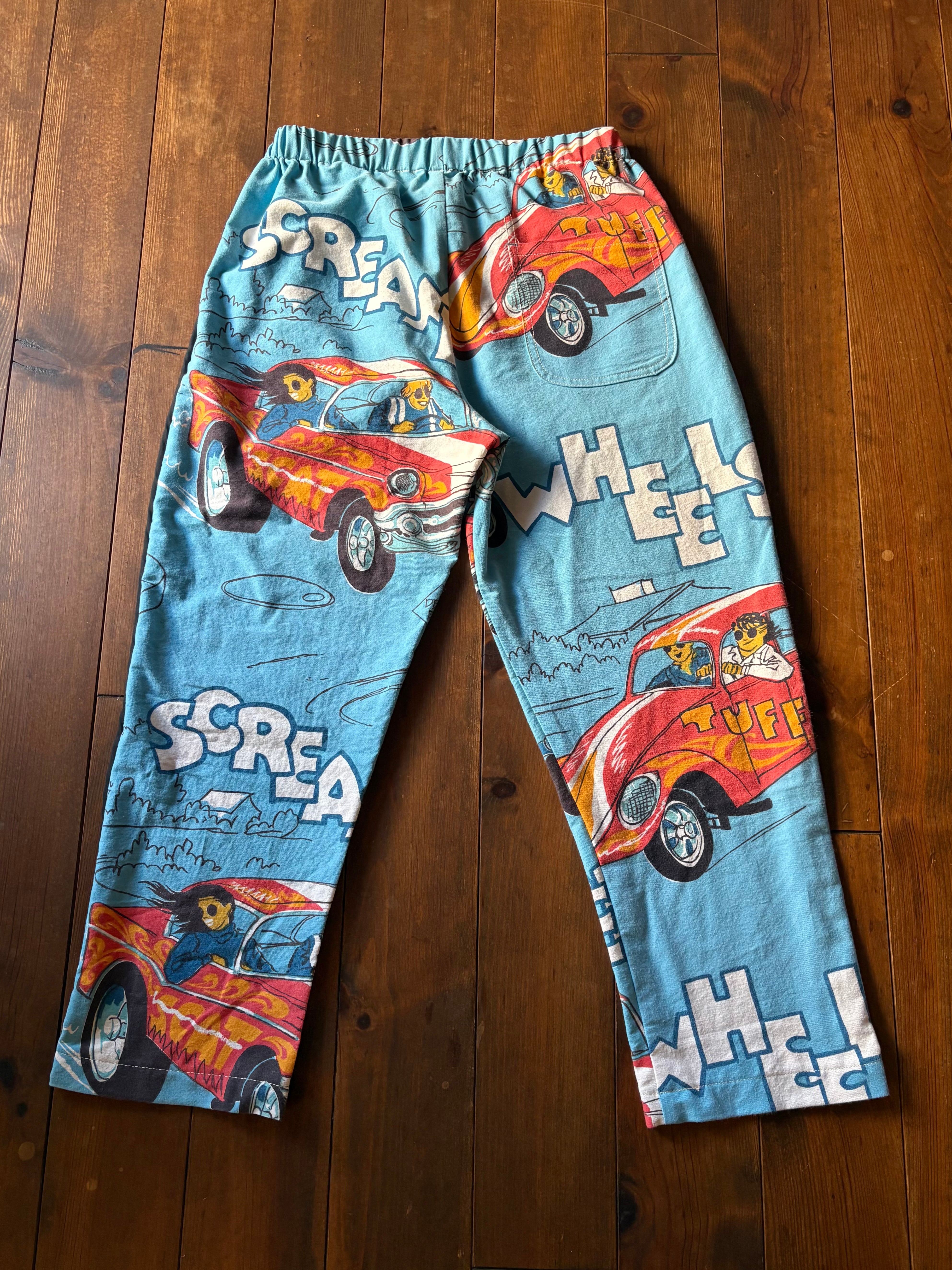 70s "SCREAMER WHEELS" VINTAGE BEDSPREATS REMAKE PANTS