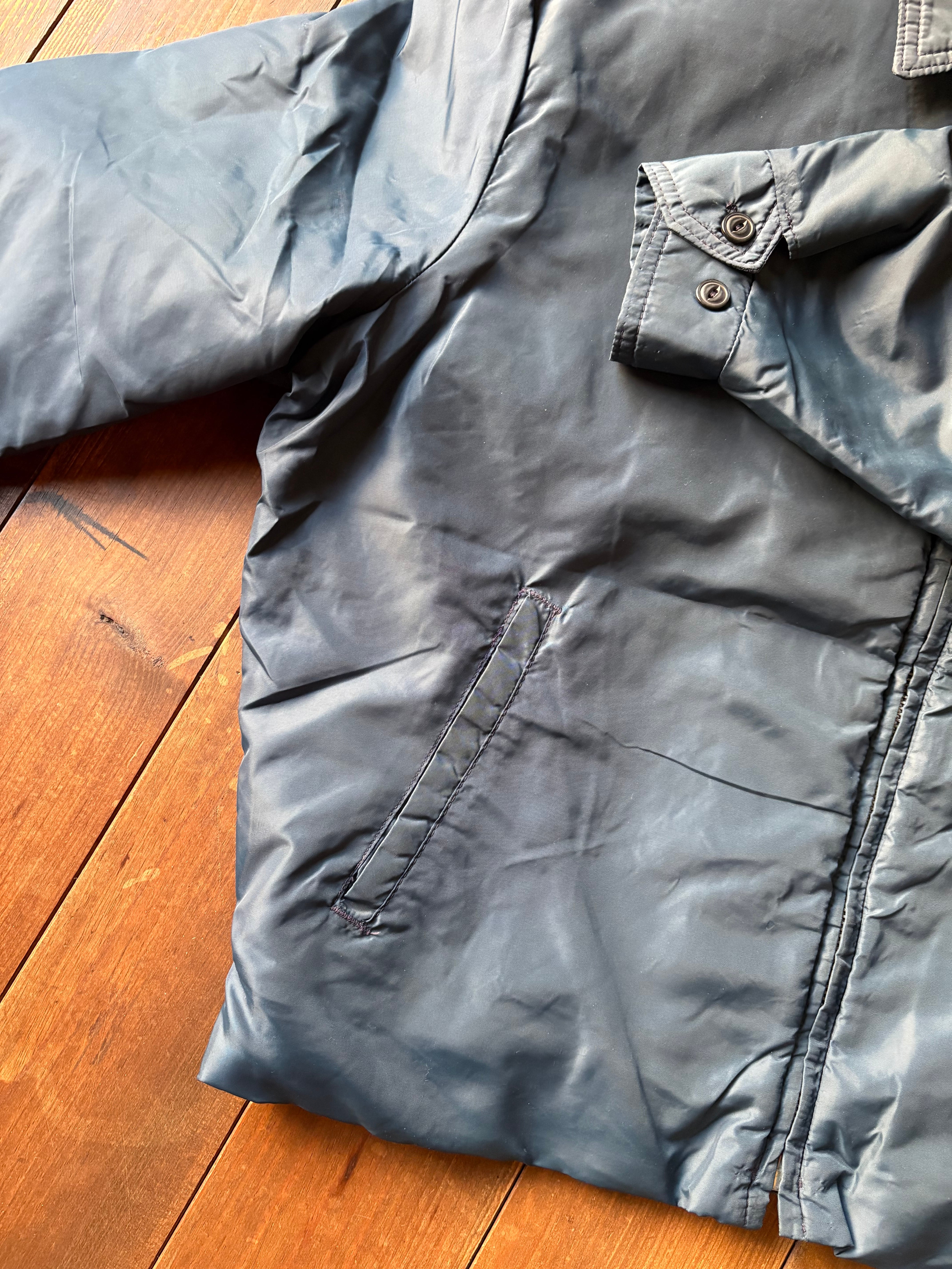 ネイビーナイロンにインサイド化繊ボア張りのナイロンジャケットになります。